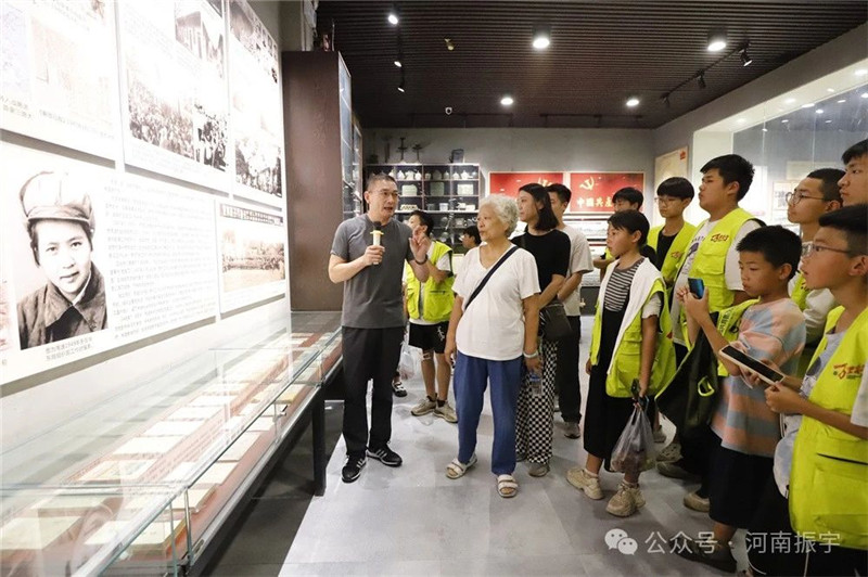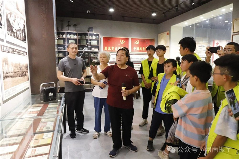 在河南振宇红色文化馆,偶遇前来开展研学的同学们,振宇党委书记、董事长宋振廷向同学们介绍到,解放战争期间,革命烈士赵培铭和周逸夫妇二人随同陈谢兵团强渡黄河,挺进豫西,来到灵宝。赵培铭烈士在“灵宝事件”中被反革命匪徒残杀、英勇就义……站在大家面前的正是赵培铭烈士和周逸战士的女儿周铭。听到这里,在场的同学们无不震撼,不约而同地为周铭老人鼓掌。