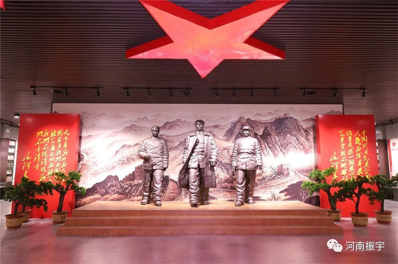 基地先后投入2000多万元,广泛收集党史文献、抗战资料和红色藏品,截至目前共收集红色藏品6000多件、毛主席像章1.5万余枚、党刊书藉5万余册、各类党史报刊36万多份。先后建成河南振宇红色文化馆、红色廉政教育馆、中国工运史文献展览室、公司发展历程馆、振宇红拓展训练基地、振宇红忆苦思甜大食堂等。