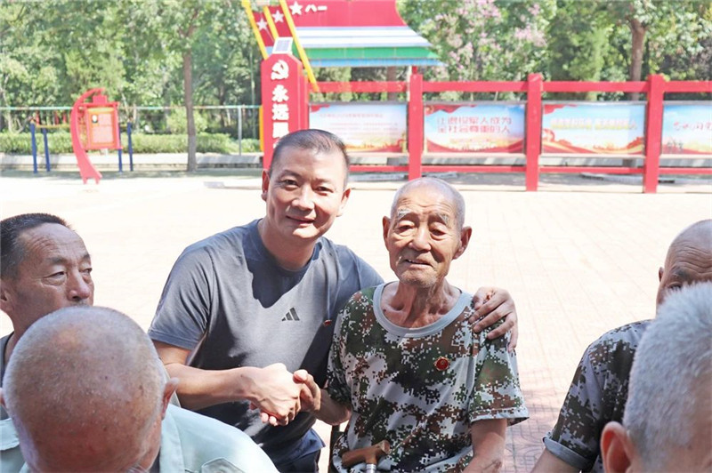 灵宝市光荣院常务副院长常赞慈、宋总与抗战老兵们高兴地忆往昔、话家常。