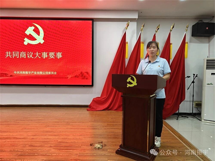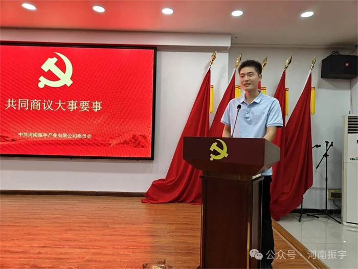 河南振宇党委书记宋振廷讲授党课,他强调,党员们要将想法与计划切实转化为行动实效,积极向身边榜样学习,主动向优秀者看齐;加强党性修养与意志锤炼,大力弘扬抗战精神的坚韧不屈与愚公移山精神的实干执着,遇困难敢攻坚、受考验勇担当,以行动践行党员使命。