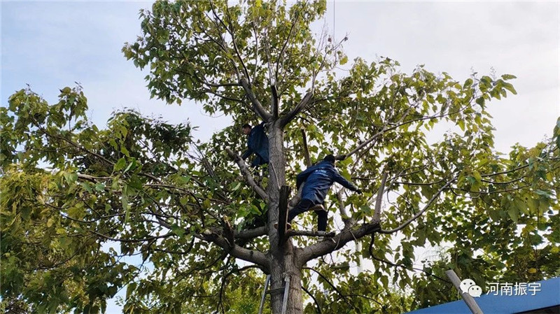 党员同志克服困难,修剪园区各处树枝,用行动美化企业环境、提升企业形象。