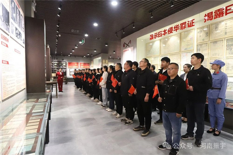 在河南振宇红色文化馆,大家认真聆听讲解员讲述抗日英烈王剑岳将军在抗日战争灵宝战役中奋勇杀敌、宁死不退的英雄事迹,深刻感受抗战英雄捍卫国家领土、誓死保卫国家的爱国精神。