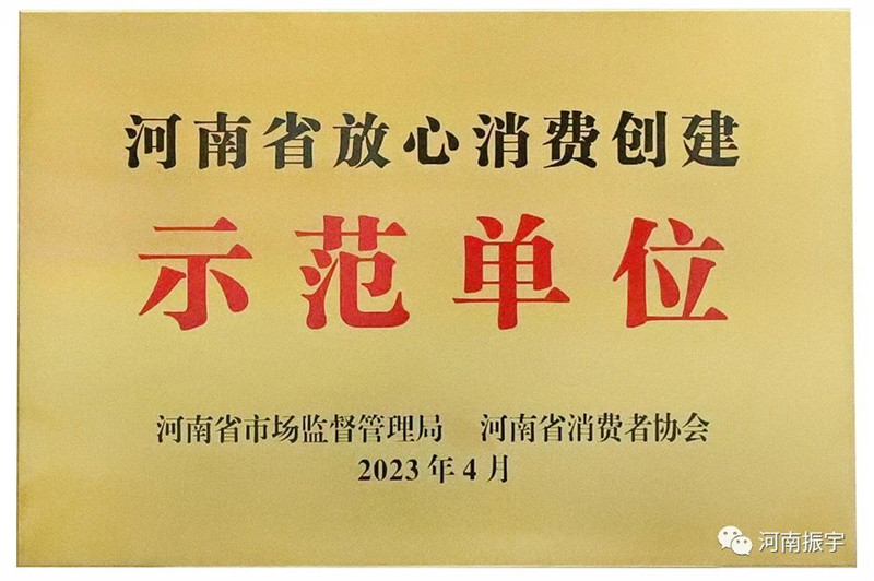 河南振宇被评为“河南省放心消费创建示范单位”