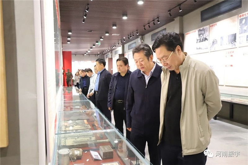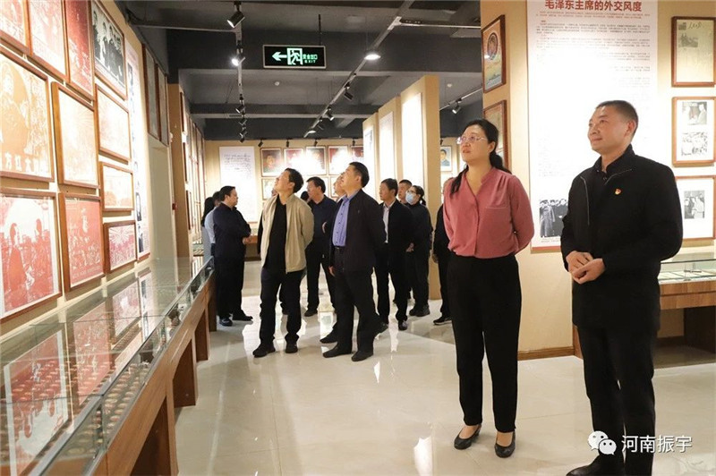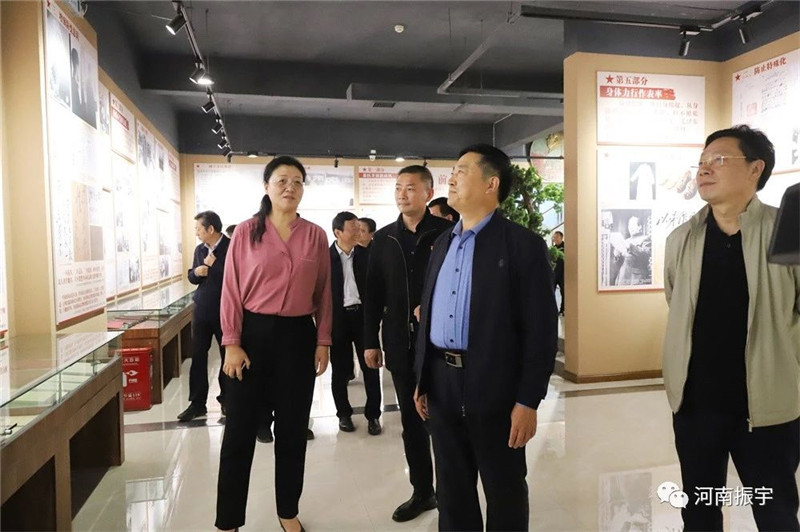 领导们听取了振宇坚持党建引领促进发展,将红色文化资源与产教融合项目结合,推进产教融合、校企合作的各项措施的汇报;并参观了河南振宇红色文化馆、红色廉政教育馆、红色文化走廊等地点,观看了馆内大量丰富的红色资源,了解了近年来振宇红色文化教育基地服务广大学生开展红色研学、思政教育、爱国主义教育、课外实践和拓展训练等情况。
