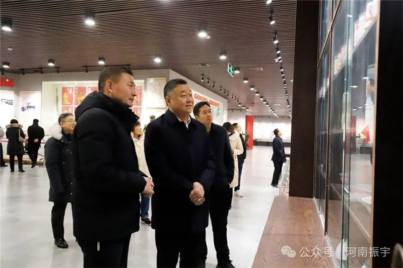 岳书记一行听取了企业发展现状和标准化工作情况的汇报,参观了红色廉政教育馆、河南振宇红色文化馆,观看馆内的党史书籍、伟人画像、纪念章以及实物藏品,了解到振宇坚持党建引领发,筹建红色展馆,服务社会各界参观学习;并以党建红色引擎带动绿色产业融合发展,不断夯实经营基础,研发生产新产品的系列举措。