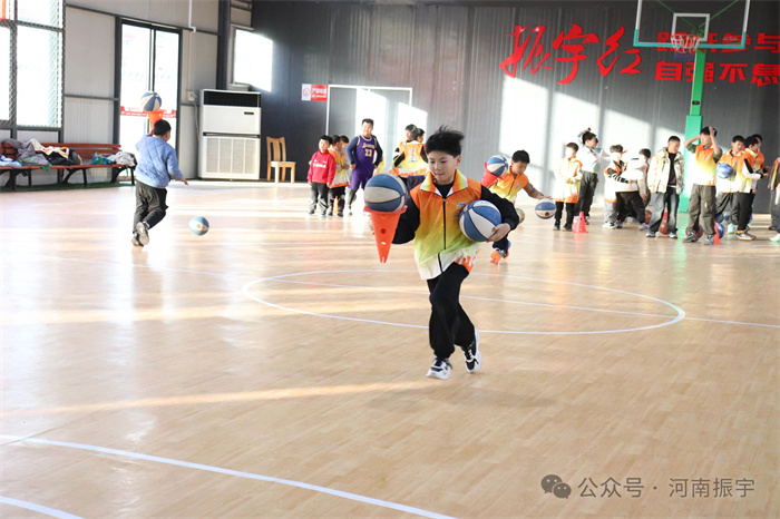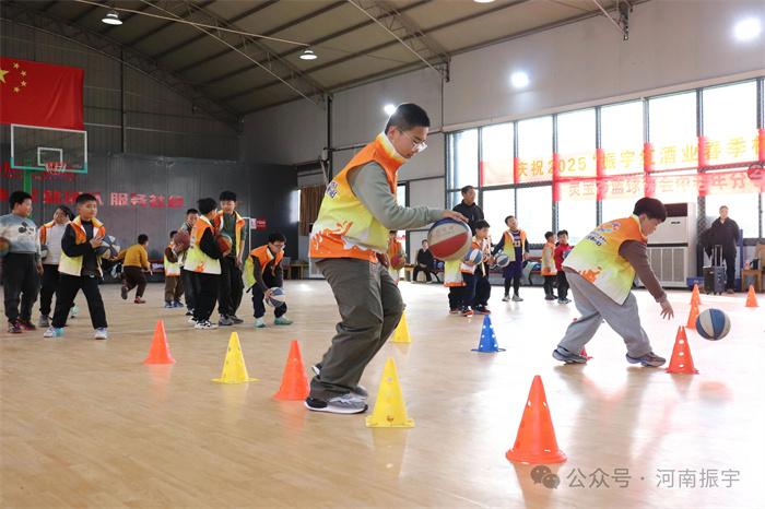 活动移至振宇红色文化教育基地的室内篮球馆。在专业老师的指导下,青少年们学习了运球、颠球等基础篮球技巧,并通过互动游戏巩固所学。