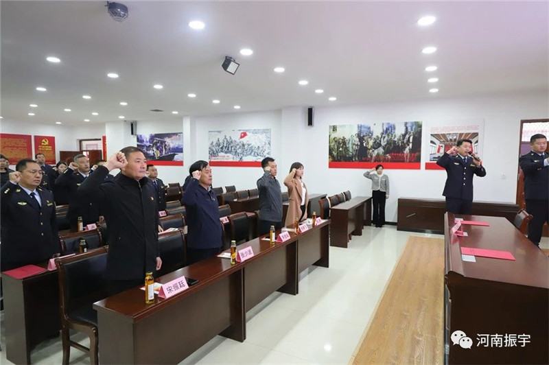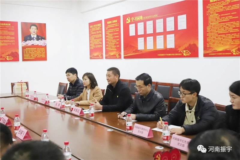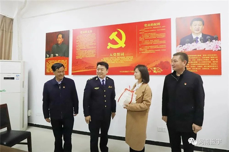 李局长向河南振宇红色文化教育基地党支部赠予党建书籍。