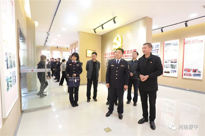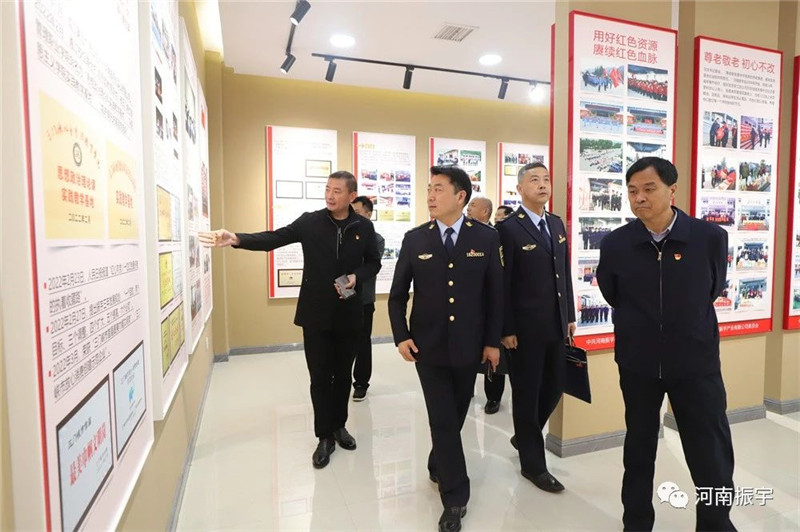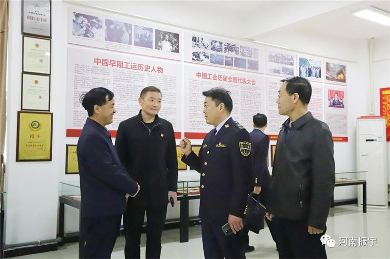 参观中国工运史文献展览室、公司发展历程馆,领导们了解了振宇“讲党性、争先锋、强党建、促发展”的工作方针,以及公司历经26年艰苦创业、诚信经营、创新发展的历程。