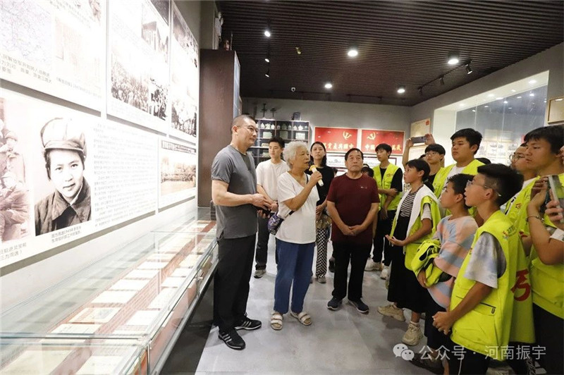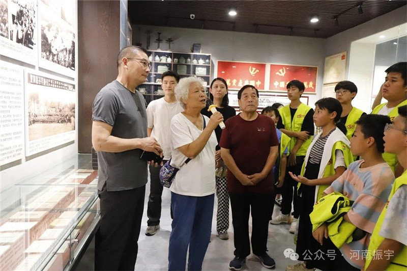 在河南振宇红色文化馆,偶遇前来开展研学的同学们,振宇党委书记、董事长宋振廷向同学们介绍到,解放战争期间,革命烈士赵培铭和周逸夫妇二人随同陈谢兵团强渡黄河,挺进豫西,来到灵宝。赵培铭烈士在“灵宝事件”中被反革命匪徒残杀、英勇就义……站在大家面前的正是赵培铭烈士和周逸战士的女儿周铭。听到这里,在场的同学们无不震撼,不约而同地为周铭老人鼓掌。