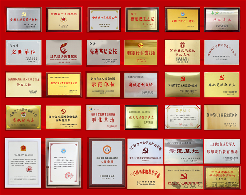 公司在28年经营发展中,被授予"全国先进基层党组织、全国守合同重信用企业、全国模范职工之家、全国五一劳动奖状、全国五四红旗团支部、全国抗击疫情先进民营企业、全国首批农民健身示范基地、全国小个专党建创新示范点、河南省文明单位、河南省农业产业化重点龙头企业、河南省高新技术企业、河南省专精特新中小企业、河南省清廉社会组织建设示范点培树单位、河南省百家社会组织党建工作观摩点、三门峡市拥军优属先进企业、灵宝市优秀民营企业”等200多项荣誉称号。