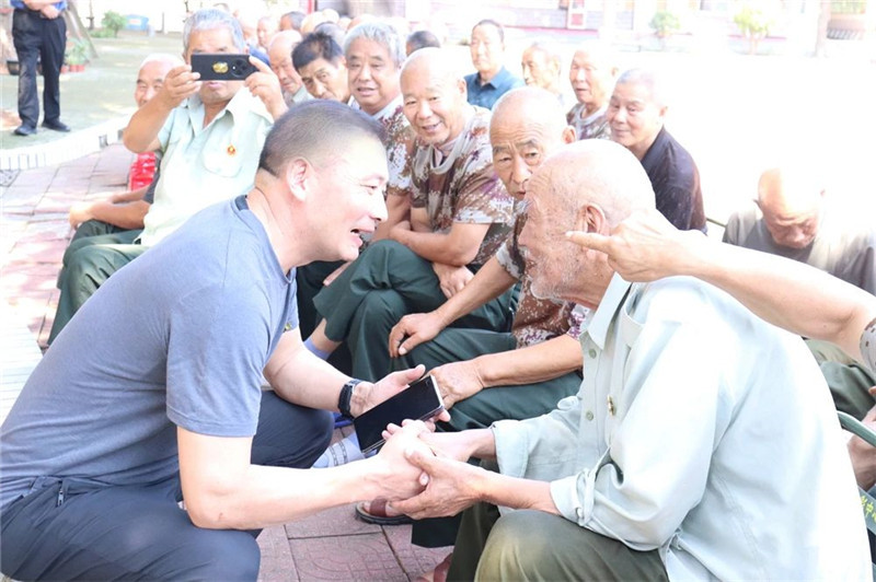 灵宝市光荣院常务副院长常赞慈、宋总与抗战老兵们高兴地忆往昔、话家常。