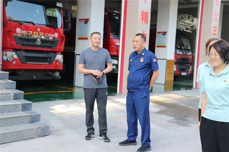 来到灵宝市消防救援大队,政治教导员王效东与宋总交流并表达谢意。