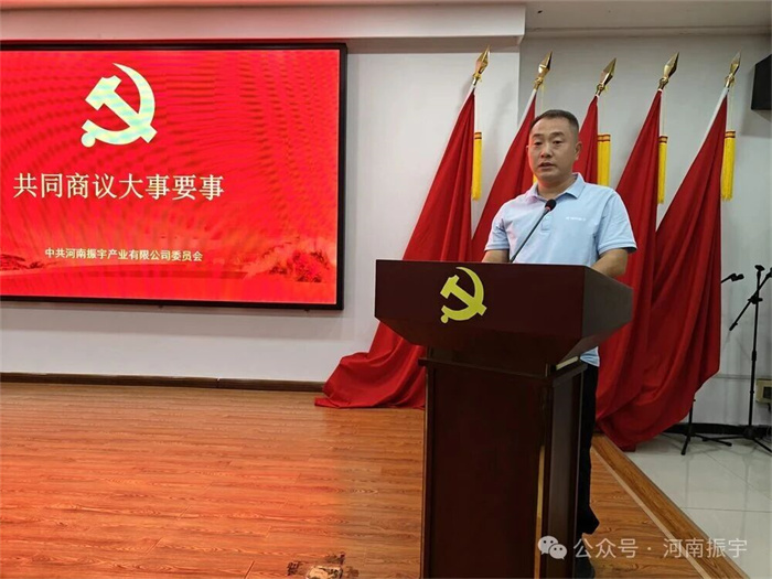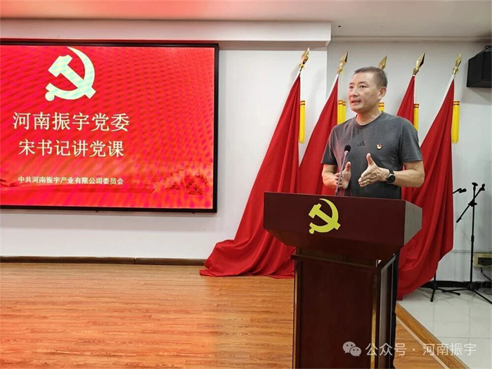 河南振宇党委书记宋振廷讲授党课,他强调,党员们要将想法与计划切实转化为行动实效,积极向身边榜样学习,主动向优秀者看齐;加强党性修养与意志锤炼,大力弘扬抗战精神的坚韧不屈与愚公移山精神的实干执着,遇困难敢攻坚、受考验勇担当,以行动践行党员使命。