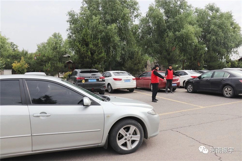 在会务接待工作中,党员志愿者和积极分子参与指挥交通工作,保障园区外来车辆安全有序流动。