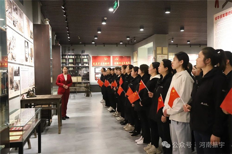 在河南振宇红色文化馆,大家认真聆听讲解员讲述抗日英烈王剑岳将军在抗日战争灵宝战役中奋勇杀敌、宁死不退的英雄事迹,深刻感受抗战英雄捍卫国家领土、誓死保卫国家的爱国精神。