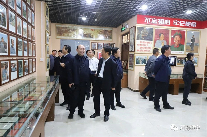 领导们听取了振宇坚持党建引领促进发展,将红色文化资源与产教融合项目结合,推进产教融合、校企合作的各项措施的汇报;并参观了河南振宇红色文化馆、红色廉政教育馆、红色文化走廊等地点,观看了馆内大量丰富的红色资源,了解了近年来振宇红色文化教育基地服务广大学生开展红色研学、思政教育、爱国主义教育、课外实践和拓展训练等情况。