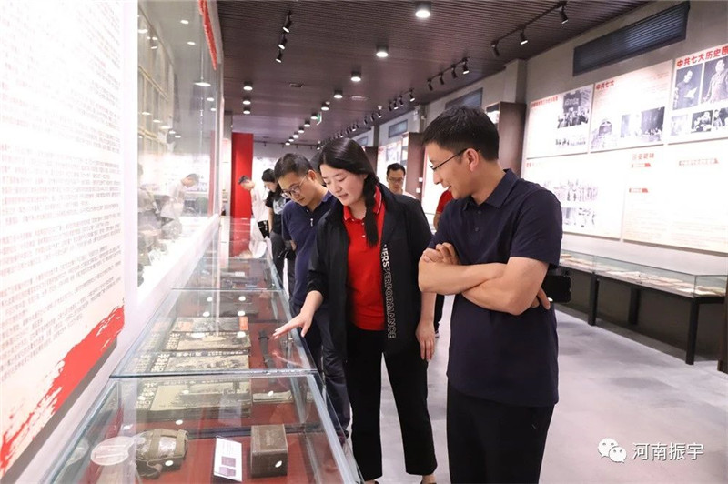 调研组领导参观了河南振宇红色文化馆、红色廉政教育馆,了解到振宇始终坚持党建引领,历时多年收集红色藏品,建设红色展馆、服务大众参观学习;并不断强化党建引领,将党建与企业生产经营深度融合,以红色引擎助推绿色食品产业蓬勃发展等系列举措。