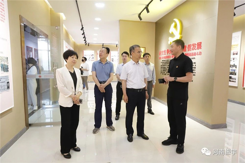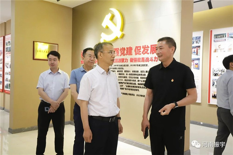 参观中国工运史文献展览室、公司发展历程展览馆,领导们观看了工运史版面、文献、书籍、证件、徽章等藏品,以及公司获得的多项党建荣誉,并了解河南振宇坚持党建引领,历经27年艰苦创业、诚信经营、创新发展的历程。