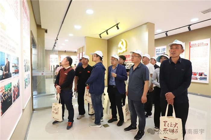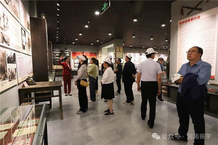 参观河南振宇红色文化馆、红色廉政教育馆、公司发展历程馆,考察团认真聆听党史故事、英雄事迹及红色藏品背后的故事,了解基地服务各校学生开展红色研学、爱国主义教育、社会实践活动等。一堂堂生动丰富的研学课程使青少年们走近历史、感悟历史,引导青少年们赓续红色血脉、厚植爱国情怀,在传承红色基因中汲取奋进力量。
