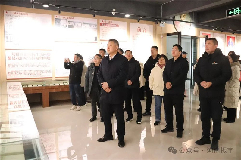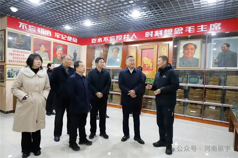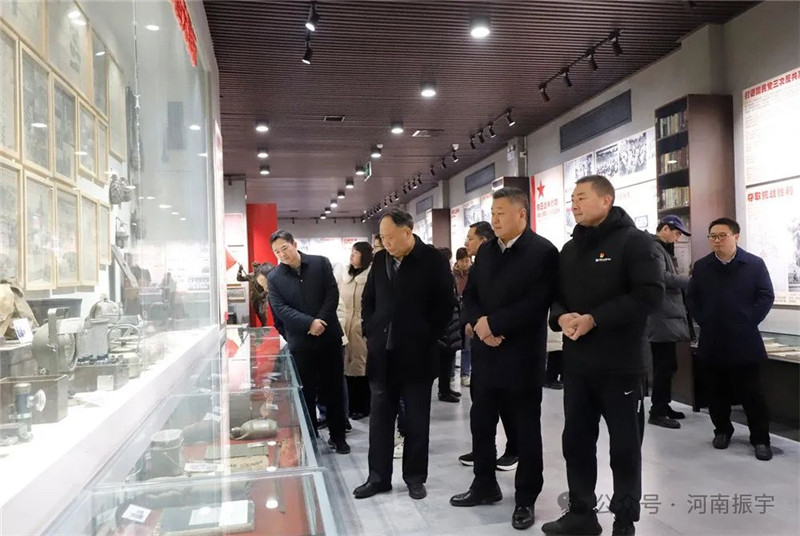 岳书记一行听取了企业发展现状和标准化工作情况的汇报,参观了红色廉政教育馆、河南振宇红色文化馆,观看馆内的党史书籍、伟人画像、纪念章以及实物藏品,了解到振宇坚持党建引领发,筹建红色展馆,服务社会各界参观学习;并以党建红色引擎带动绿色产业融合发展,不断夯实经营基础,研发生产新产品的系列举措。